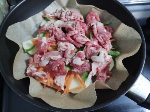 お好みで、パラパラチーズを乗せてシートの下にを入れて