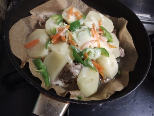 材料   ・じゃがいも🥔 中~大 2個 ・片栗粉  大 1.5 ・米粉   大 1.5   (米粉の代わりに小麦粉でも ...